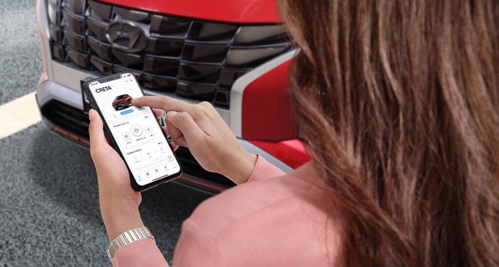 konektivitas Hyundai Bluelink, sebuah platform yang memudahkan Anda dalam mengecek informasi penting tentang mobil Anda. Ini akan