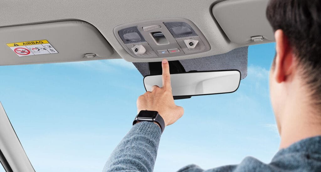 Jika mobil Anda bermasalah di tengah perjalanan, Anda dapat meminta bantuan dengan menekan tombol Bluelink yang terletak di overhead console. Bluelink call center akan memberitahu lokasi Hyundai Service Center terdekat atau mengirimkan mobil derek ke lokasi Anda.